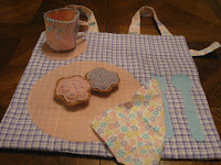The girly version I am calling the "Tea to Go" It is the same size as the race track, but it has a cloth tea cup, 2 fabric cookies, and a matching napkin that all fold up and fit into the pockets. They are both very cute if I may say so.